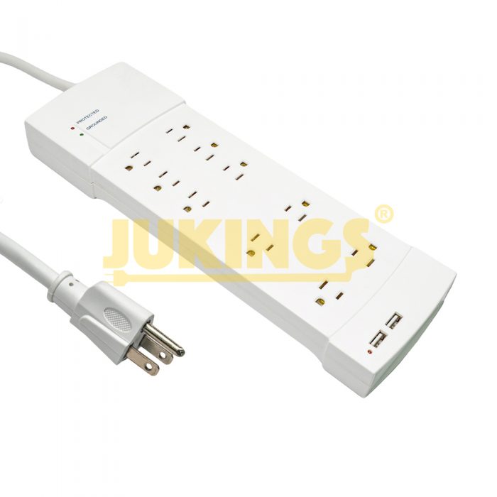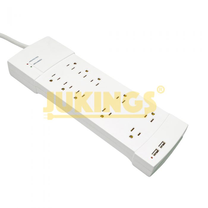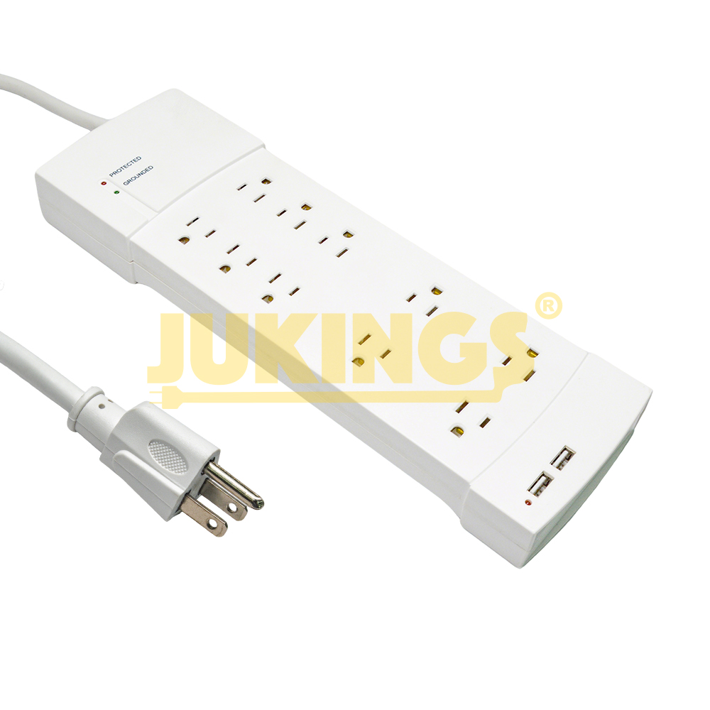 15A 125V Power Strip with 10 Outlets & 2 USB a Surge Protected & Nema 5-15R Adapter Socket SJT Cord Extension