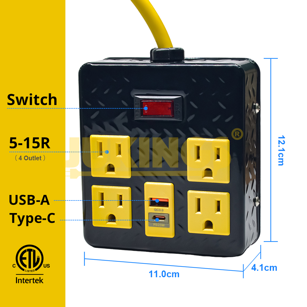 4 AC Outlet 1USB a 1Type C Extension Socket 15A 14/3 3FT Power Strip With 5-15P Plug for Office & Home Use 评分 0 / 5 (be the first to review) SKU: J1403PS94 分类: Power Strips 标签: 15A rated current power strip, extension socket power strip 其他信息 用户评价 (0) 其他信息 重量 1 kg 尺寸 20 × 20 × 6 cm Rated Voltage 125 V Rated Current 15amps /USB:2.1amps Material PVC , Copper Cable Length 3ft Brand Name OEM Color Black & Yellow Wire Type SJT Gauge 14 Certification CETL ETL Usage provides power and charging Plug Wire Hole 4 AC+1 USB A+1 Type C 评价 目前还没有评价 Leave a customer review 取消回复您的电子邮箱地址不会被公开。 必填项已用*标注您的评级 * 评价… 完美 很好 普通 还行 极差 您的评价 *名称 * 电子邮件 * 在此浏览器中保存我的显示名称、邮箱地址和网站地址,以便下次评论时使用。 Δ 相关产品 阅读更多 Straight Blade Angles Dryer Replacement Male Plug NEMA 14-50P Power Plug, 50-amp 4-prong 125/250V Plug with Socket Transparent 阅读更多 Manufacturer 125V 250V 30A Nema TT-30R female receptacle wall socket 阅读更多 IEC C14 socket charging plug connector adapter for motorcycle